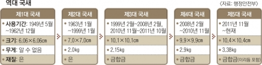현재 국새는 2011년부터 사용하는 제5대 국새다. 대한민국 국새 변천사는 현대사의 영욕을 압축해서 보여 준다.