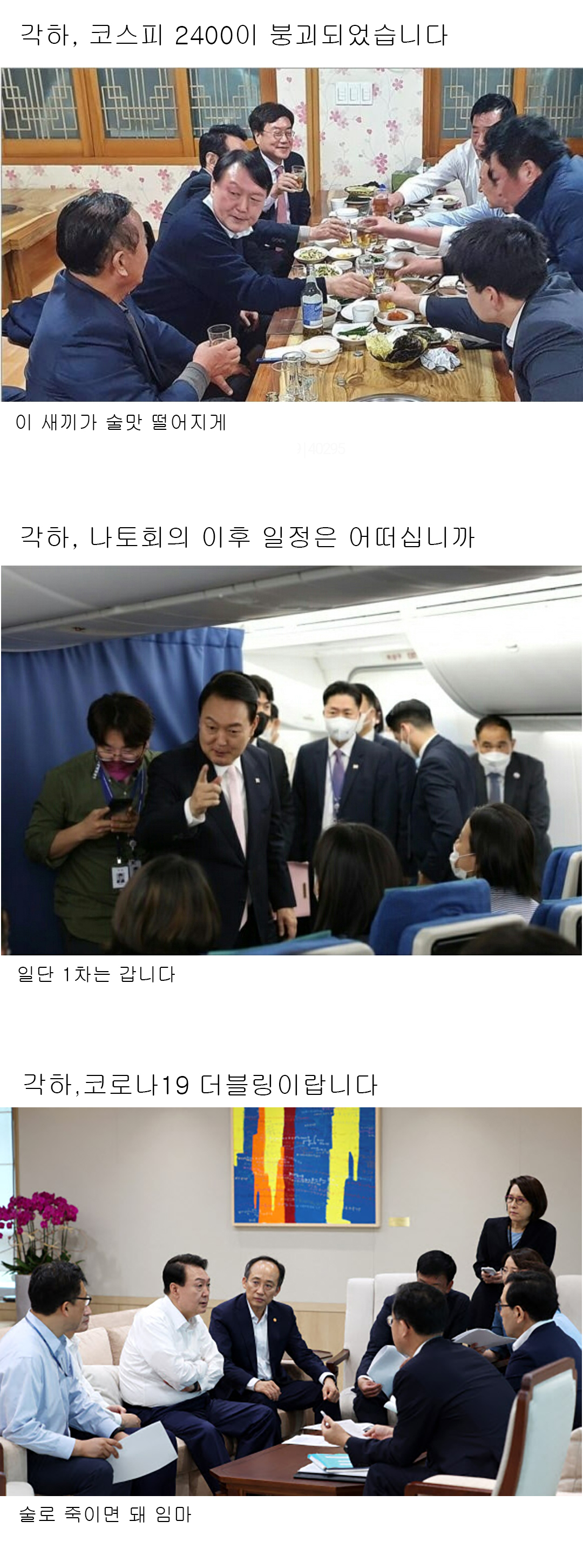 #스페인 마드리드로 가는 대통령 전용기. 성남공항을 이륙한 지 12시간 뒤 윤석열이 기자단 탑승 구역에 나타났다.