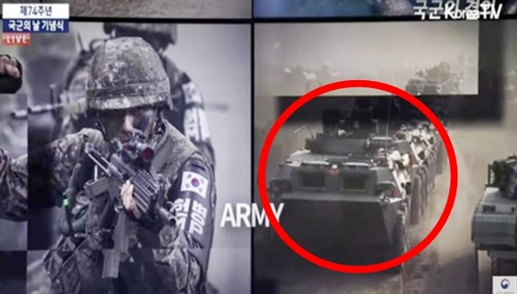 국방부는 의도적으로 현무 탄도미사일을 노출하며 대북 경고성 메시지를 보냈지만 정작 기념식 뒤 생방송에 포함된 ‘국군의 결의’ 영상에서 국군의 다양한 최신 무기를 보여 주다가 중국군 보병 전투차(ZSL92)를 써서 부랴부랴 수정하며 체면을 구겼다. 국방부는 논란이 확산되자 실수를 인정하고 유감을 표명한 뒤 각 방송사에 온라인 영상 수정(편집)을 요청했다고 2일 밝혔다.