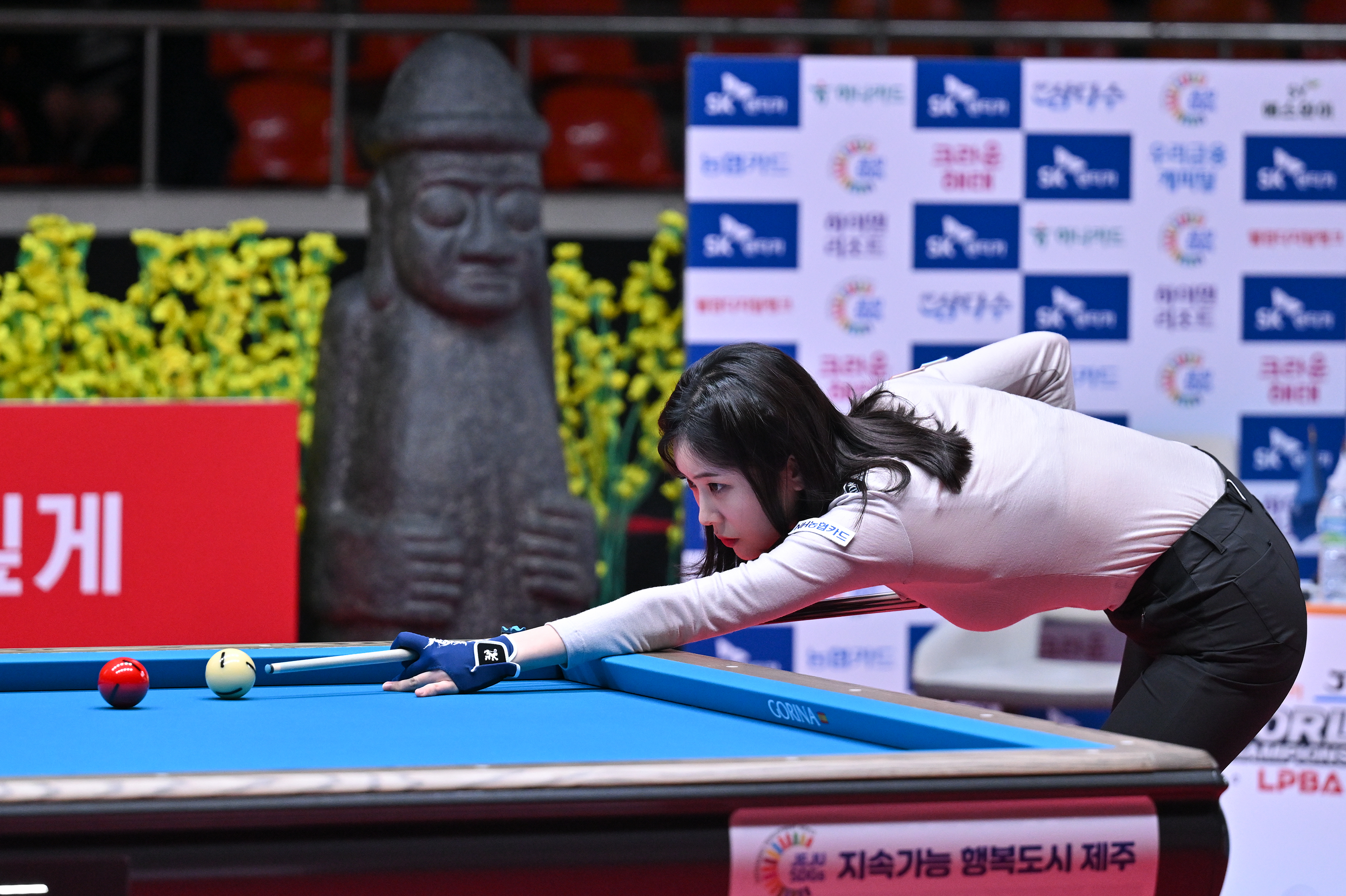 한 시즌을 마무리하는 이번 제주 월드챔피언십에선 16강에서 캄보디아 고수 스롱 피아비에게 패했다. 정수빈은 두고두고 아쉽다고 했다. “32강전에선 제가 1등으로 16강에 진출했고 스롱 선수는 최하위로 올라왔거든요. 예선에선 스롱 선수가 컨디션이 안 좋아 제가 이겼는데, 이를 갈고 준비한 것 같아요.” 정수빈은 “그래도 너무 일방적으로 졌다. 다음엔 꼭 이기고 싶다”고 각오를 다졌다.