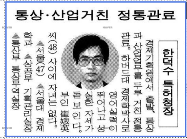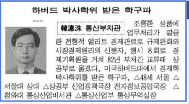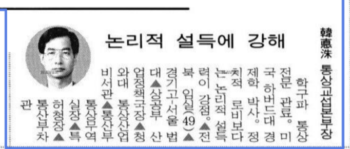 또 하나는 고향을 이리저리 갈아 끼웠다는 걸 알았을 때였다. 예전 신문기사를 찾아보니 한덕수는 1996년과 1997년에는 분명히 서울출생이라고 했는데 김대중 정부가 들어선 1998년에는 갑자기 ‘전북 출생’이라고 출생지를 바꿨다. 그가 ‘통상의 달인’인지는 잘 모르겠지만 ‘세탁의 달인’이라는 건 분명해 보인다.